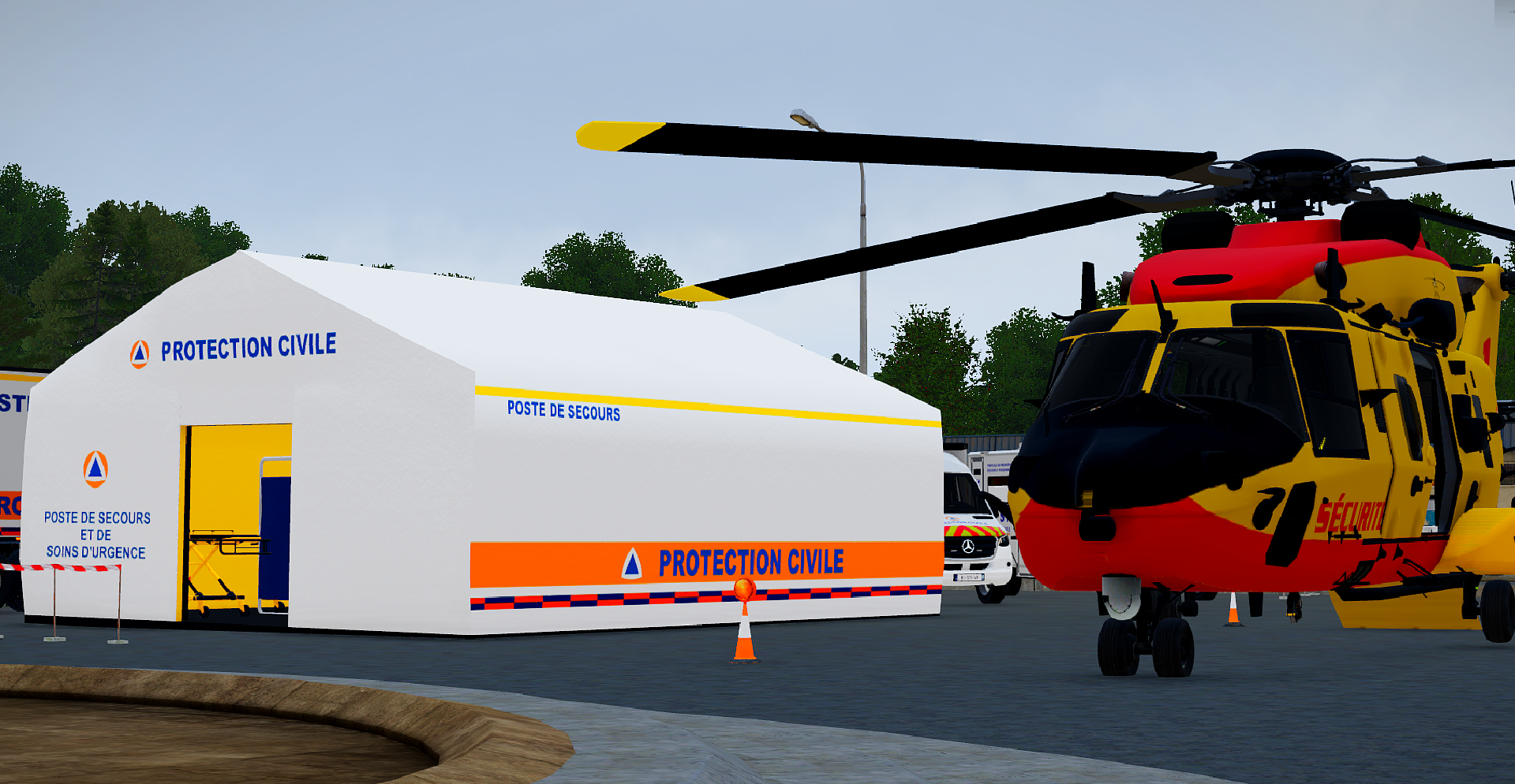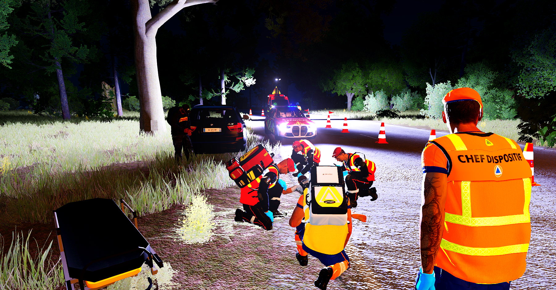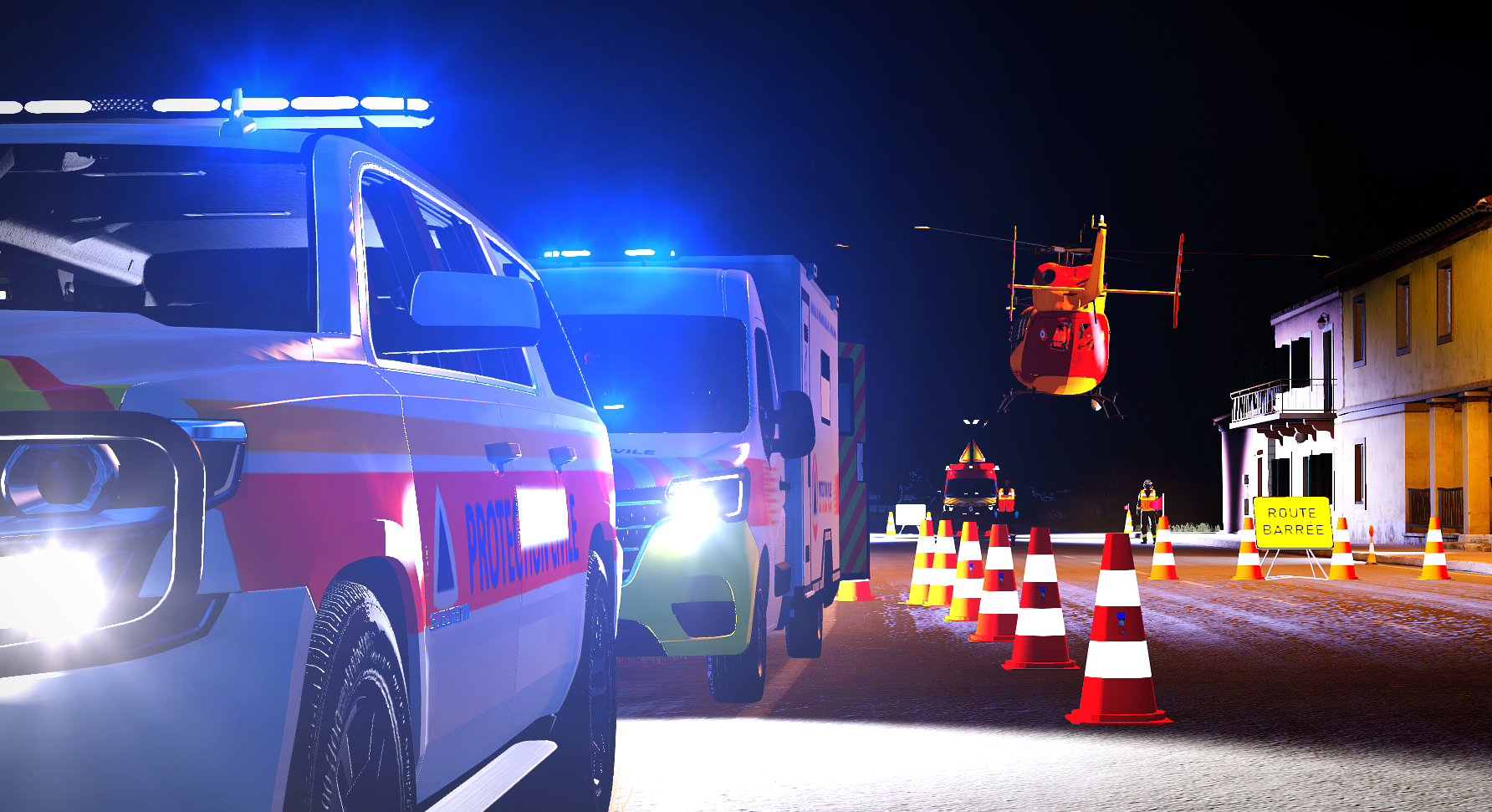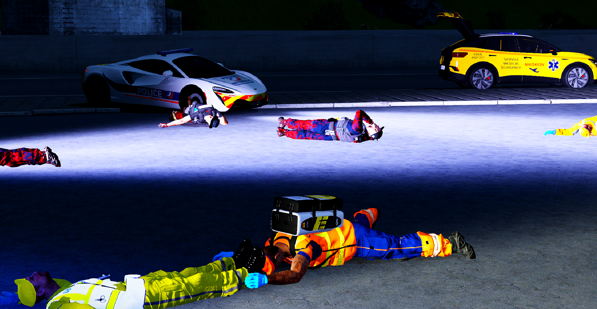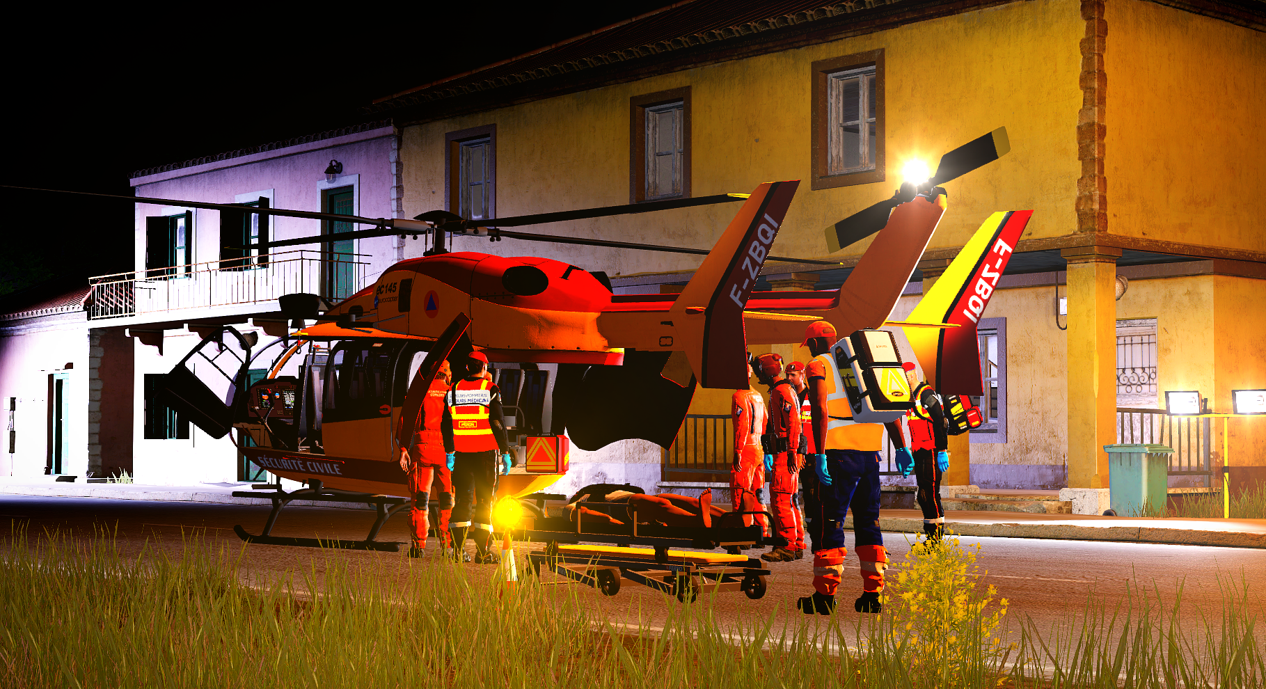 Par une nuit calme, dans un village côtier proche d'une prison, un homme s'effondra sur la route principale, victime d'un arrêt cardio-respiratoire. Les secours arrivèrent rapidement : PCiVC, pompiers et SSSM s'unirent pour tenter de le réanimer. Peu après, le EC-145 de la Sécurité Civile atterrit sur une portion dégagée de la route, loin de la prison. Transporté sur un brancard jusqu'à l'hélicoptère, l'homme fut pris en charge par l'équipe médicale. Les pales tournèrent, et l'hélicoptère s'éleva dans la nuit, emportant l'espoir d'une vie sauvée.