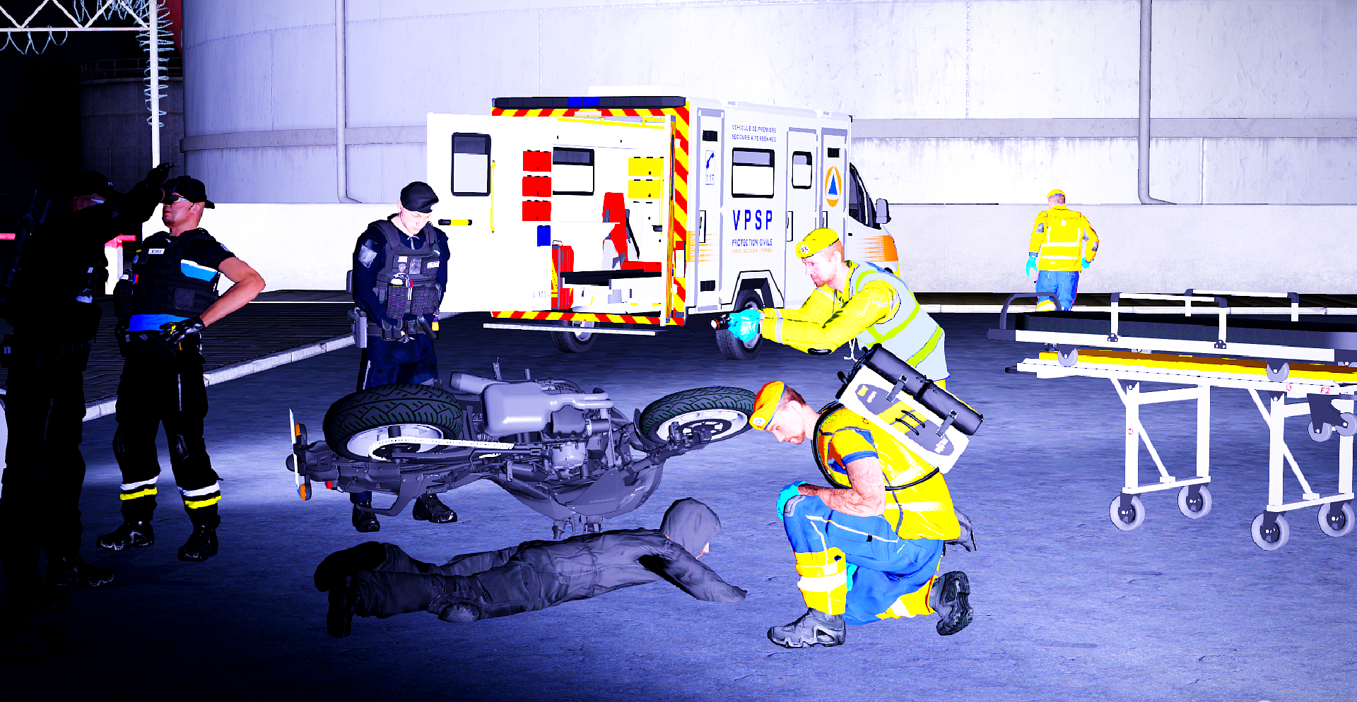 La Protection Civile de Vice City (PCiVC) joue un rôle essentiel dans la sécurité et l'assistance de la population. Lors d'un accident de moto sur un parking, la PCiVC est intervenue aux côtés des pompiers et du SAMU. Après quelques manipulations sur le véhicule, la moto a explosé, tuant tous les effectifs présents, à l'exception d'un policier et d'un agent de la PCiVC. Les sapeurs-pompiers ont mis en place un Poste Médical Avancé (PMA) pour traiter les blessés, et certains ont été évacués par l'hélicoptère EC-145 de la sécurité civile. Cet épisode illustre la réactivité et l'engagement des équipes face aux situations critiques.